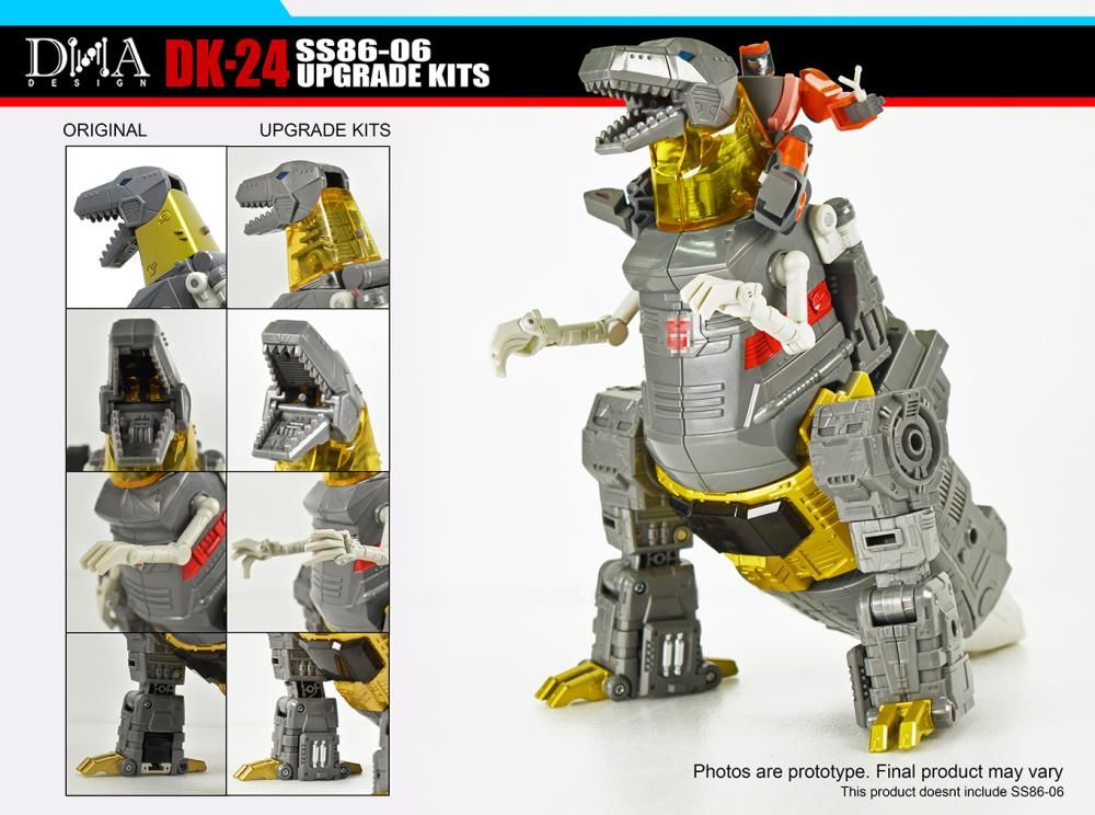 Please note: This aftermarket accessory piece is not produced or associated with Hasbro or Takara and is not a Transformers brand toy. These custom pieces are intended to further enhance the enjoyment of your existing Transformers collection.The DK-24 Upgrade Kit contains several new parts for the separately sold Studio Series 86-06 Leader Grimlock Wheelie.