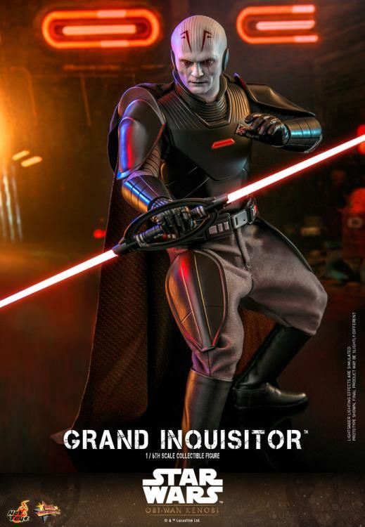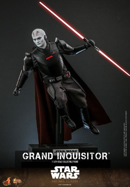 Not much is known about the Empires Grand Inquisitor. The Pauan is the leader of an elite cadre of Force-sensitive interrogators and hunters tasked with tracking down Jedi survivors who escaped Order 66. He reports directly to Darth Vader. Like his superior, the Inquisitor is an intimidating figure, dressed in black and wielding a red, double-bladed lightsaber.Hot Toys is pleased to officially introduce the Grand Inquisitor Sixth Scale Figure from the Obi-Wan Kenobi live-action series!The collectible figure is meticulously crafted featuring a newly developed head sculpt with stunning likeness, skillfully tailored outfit, light-up chest armor light, luminous reflective effect on the belt, LED light-up double-bladed lightsaber, interchangeable lightsaber blades emulating the weapon in motion, a Darth Vader hologram and holoprojector, and a display base!The menacing leader of the Inquisitors will leave a striking presence in your Star Wars collection!Other figures not included