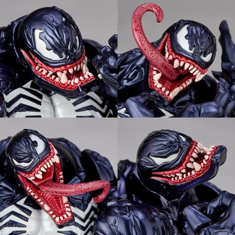 Kaiyodo presents a reissue of a fan favorite: the incredible Amazing Yamaguchi Revoltech Venom!This menacing villain stands 6.9 inches of beefy, brawny badassery! Hes fully posable featuring a whopping 47 points of articulation to wreak all kinds of havoc, and includes 4 attachable tendrils of evil black goop, an extra head to vary his expression, and a big ol swiveling tongue!Pose this incredible Venom figure on his stand for an awesome fight scene with the Amazing Yamaguchi Spider-Man (sold separately)!