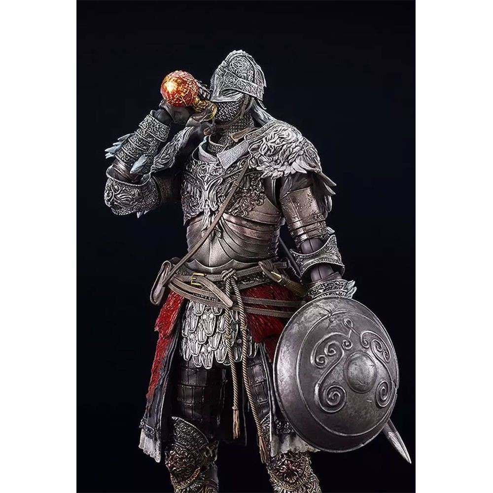 This figure beautifully captures the ornate armor of the Raging Wolf, meticulously recreating the minute details to bring the character to life. It comes complete with its iconic weaponry including a bastard sword, an iron roundshield, a Dark Moon greatsword, twin blades, a torch, and a flask of crimson tears, allowing you to recreate your favorite battle scenes from the game.
