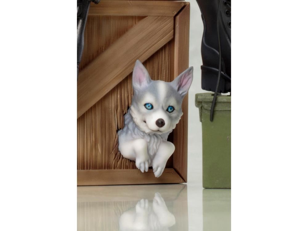 From her clothing to her rifle and the crate beneath her every element of this statue is intricately sculpted and highly detailed. There's even a wolf pup peeking out from its hiding spot inside the broken crate! Sculpted by Takaboku Busujima (BUSUJIMAX), Sniper Wolf is 7 inches tall (1/7 scale) sitting on her crate display base. Recruit her to stand guard over your collection and she'll keep an eye on you!