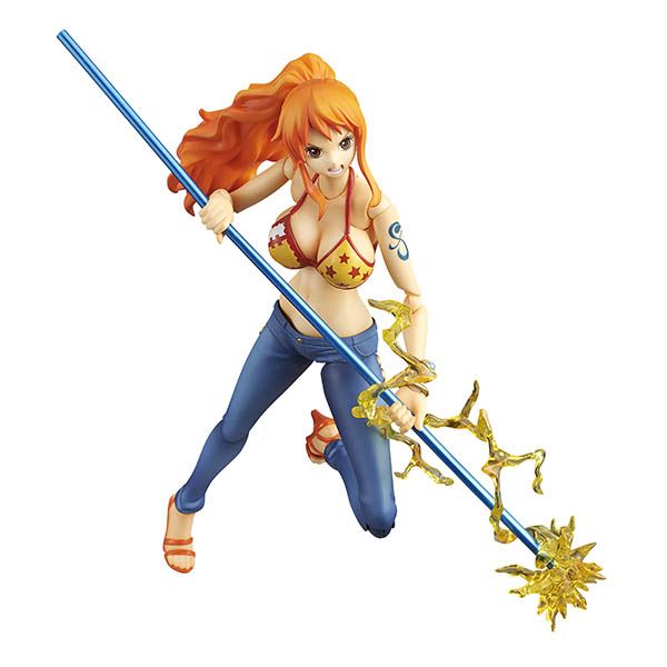 Dressed in her costume from the Punk Hazard story arc, the navigator of the Straw Hat Pirates comes with multiple facial expressions and her staff and stands just over 6 1/2 tall.