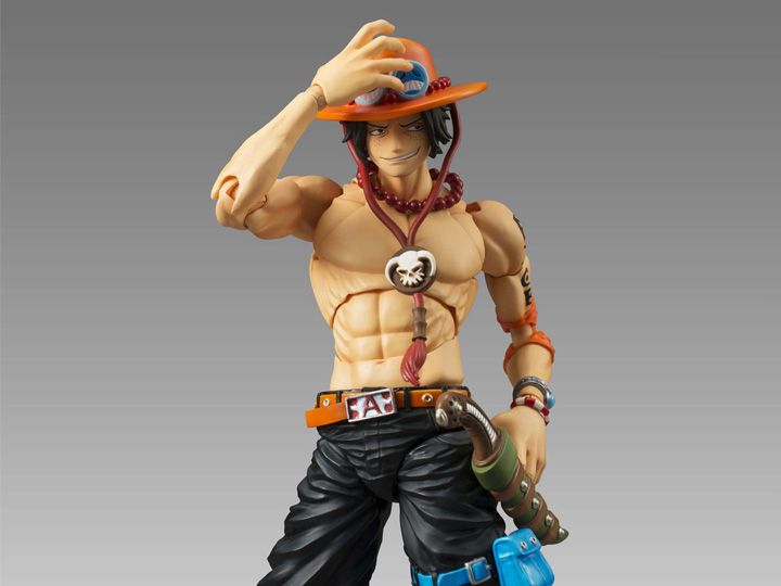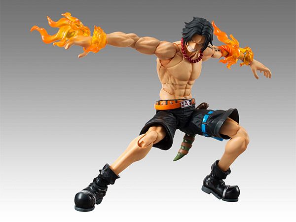 From the hit anime and manga series One Piece comes a Variable Action Heroes figure of the flame master, Portgas D. Ace!This articulated figure includes 3 facial expressions, interchangeable hair pieces to wear his hat, his necklace, 4 pairs of interchangeable hands, 4 flame effects, and his knife.