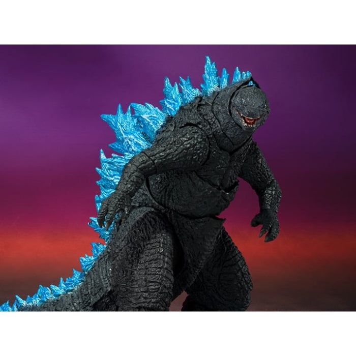 Godzilla from Godzilla x Kong: The New Empire is now available in the S.H.MonsterArts series. The luminescence of the dorsal fins in the movie is reproduced in metallic coloring, as well as the distinctive pattern on the dorsal fins. Based on the movie's data, it has been sculpted, colored, and produced by Yuji Sakai, a leading figure in Godzilla modeling. Mitsuhiko Hosokawa, who create the posable mechanisms used by successive generations of S.H.MonsterArts products, has made it possible to move the figure without compromising its proportions. The impressive dorsal fin's luminescence from the movie is reproduced in color. A radiant heat ray effect for Godzilla is included. One type of replacement wrist part for left and right is also included. The range of reenactment of scenes with play is expanded!