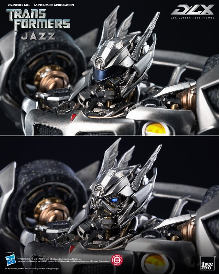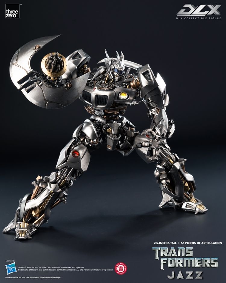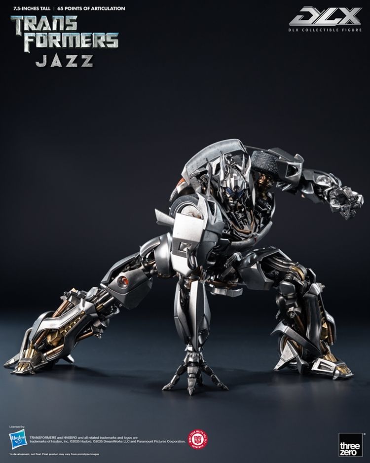 An officially licensed DLX figure of Jazz by threezero, faithfully capturing the on-screen design with premium articulation and realistic weathering.