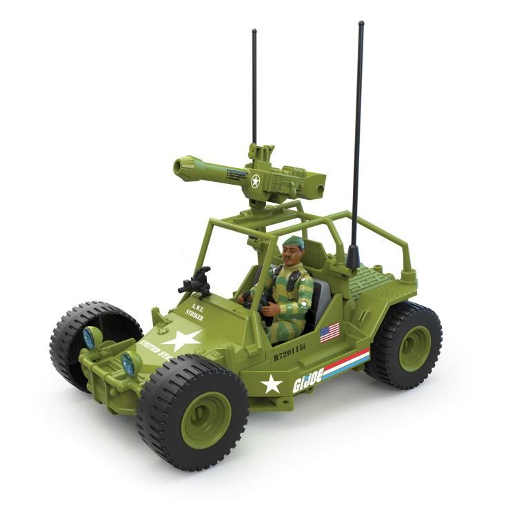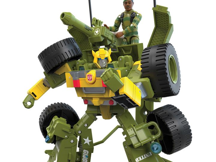 Worlds collide in this Transformers-G.I. Joe mash-up pack! G.I. Joe and the Autobots team up to protect the world! Stalker and Bumblebee, disguised as an A.W.E. Striker, scout out Cobra-Decepticon strongholds. The Bumblebee A.W.E. Striker toy converts from robot to A.W.E. Striker mode in 21 steps and comes with G.I. Joe Retro Lonzo Stalker Wilkinson figure. Figures feature deco and details based on the worlds of Transformers and G.I. Joe. Includes cannon and weapon accessories. Accurate scale to the 1985 A.W.E. Striker toy. Packaging is inspired by a mash-up of the classic 80s toys with retro artwork. Lonzo Stalker Wilkinson toy comes on a card back with file card.