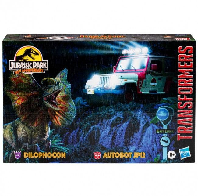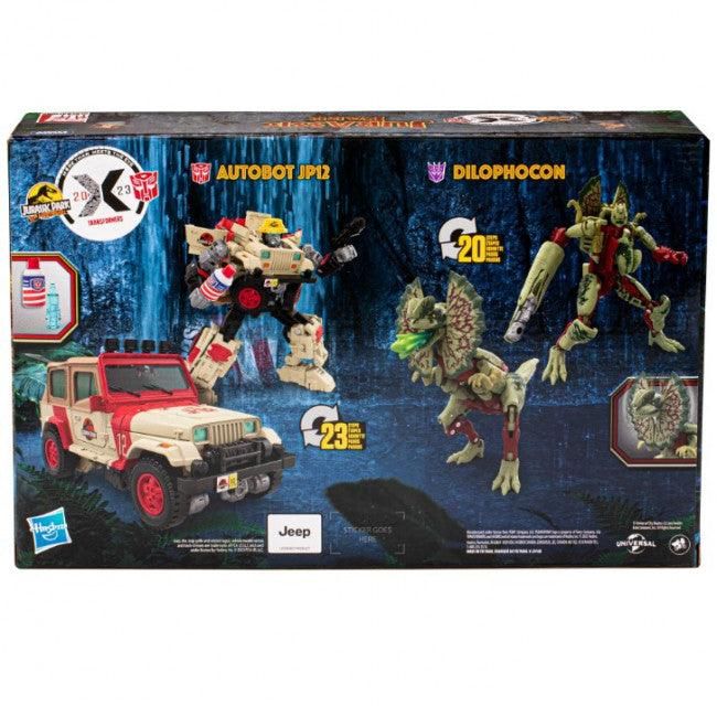 The worlds of Transformers robots and Jurassic Park collide with the Jurassic Park x Transformers Dilophocon and Autobot JP12 mash-up pack! The iconic Dilophosaurus and Jeep Wrangler Sahara from the Jurassic Park movie are now Transformers robots! Each figure converts from robot mode to movie-inspired alt mode and features screen-accurate deco and details. Remove the Dilophocon figure's tail and attach as a blaster accessory. This 2-pack comes with an additional blaster for the Autobot JP12 figure, and movie-inspired accessories including a shaving cream canister, embryo containment unit, rain hat, and venom blast effect. Transformers robots have always been - More Than Meets the Eye - but now, through the Transformers Collaborative, fans can experience these larger-than-life characters as they team-up, mash-up, and meet up with other characters, teams, and people who share this same special quality.