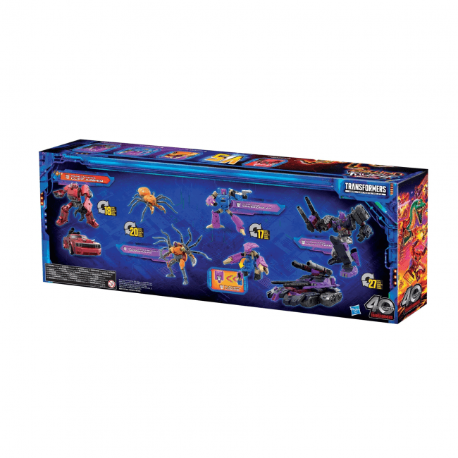 Unite your favorite characters from across the world of Transformers robots into your collection with the Transformers Legacy United Multipack! Beast Wars Tarantulas 5.5-inch (14cm) action figure converts between robot mode and spider mode in 20 steps. Prime Universe Cliffjumper 5.5-inch (14cm) action figure converts between robot mode and car mode in 18 steps. G1 Universe Squeezeplay 5.5-inch (14cm) action figure converts between robot mode and beast mode in 17 steps. Cyberverse Universe Tarn 7-inch (17.5cm) action figure converts between robot mode and tank mode in 27 steps. They feature articulated head, arms, and legs for awesome action poses. Celebrate the last 40 years of Transformers history with Transformers Legacy action figures. Transformers Legacy opens the portal to a whole new universe of - More Than Meets the Eye - bringing together every Transformers generation like you’ve never seen before. Collect and combine different characters to create your ideal Legacy lineup.TRANSFORMERS and HASBRO and all related trademarks and logos are trademarks of Hasbro, Inc. © 2024 Hasbro