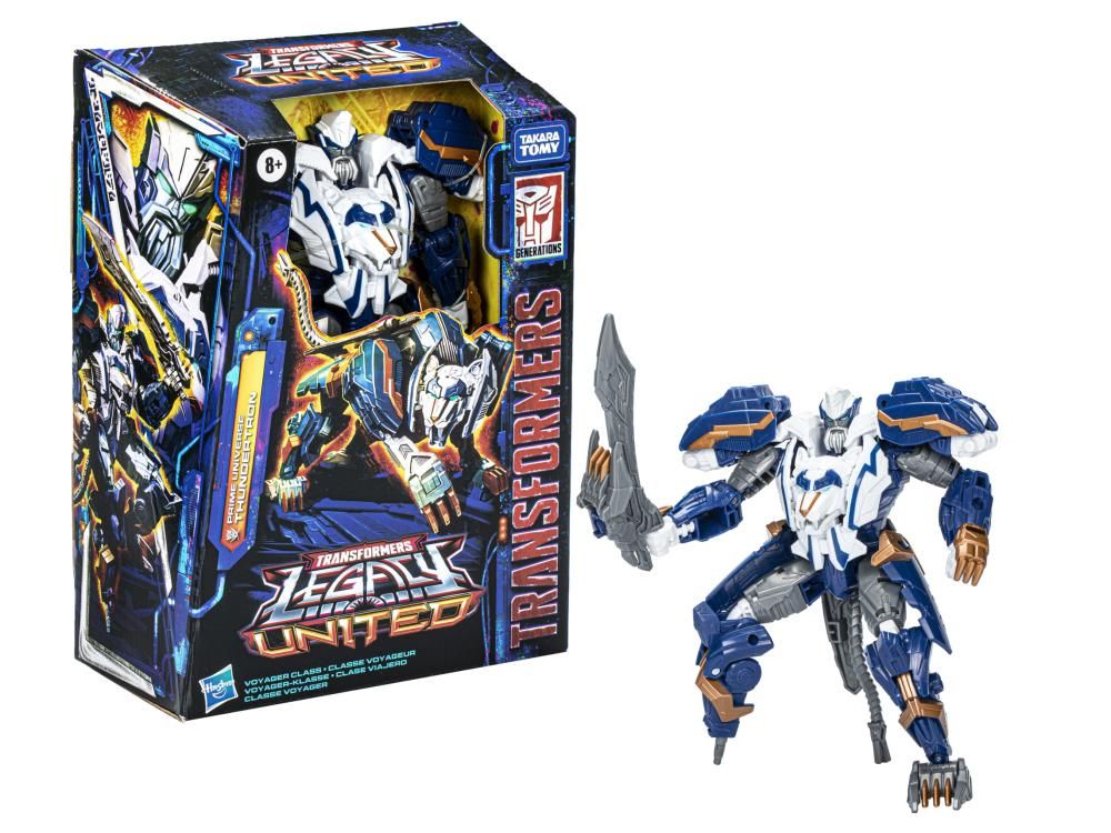 Unite your favorite characters from across the world of Transformers robots into your collection with the Transformers Legacy United Voyager Class Prime Universe Thundertron action figure! This 7-inch Prime Universe Thundertron action figure converts between robot and Cybertronian lion modes in 24 steps.Gear up for battle with the included sword accessory that attaches in both modes. The Prime Universe Thundertron figure is inspired by the character from the Transformers: Prime toy line and features articulated head, arms, and legs for awesome action poses.Celebrate the last 40 years of Transformers history with Transformers Legacy action figures. Transformers Legacy opens the portal to a whole new universe of -- More Than Meets the Eye -- bringing together every Transformers generation like youve never seen before. Collect and combine different characters to create your ideal Legacy lineup.
