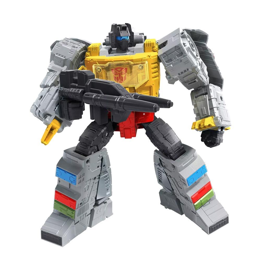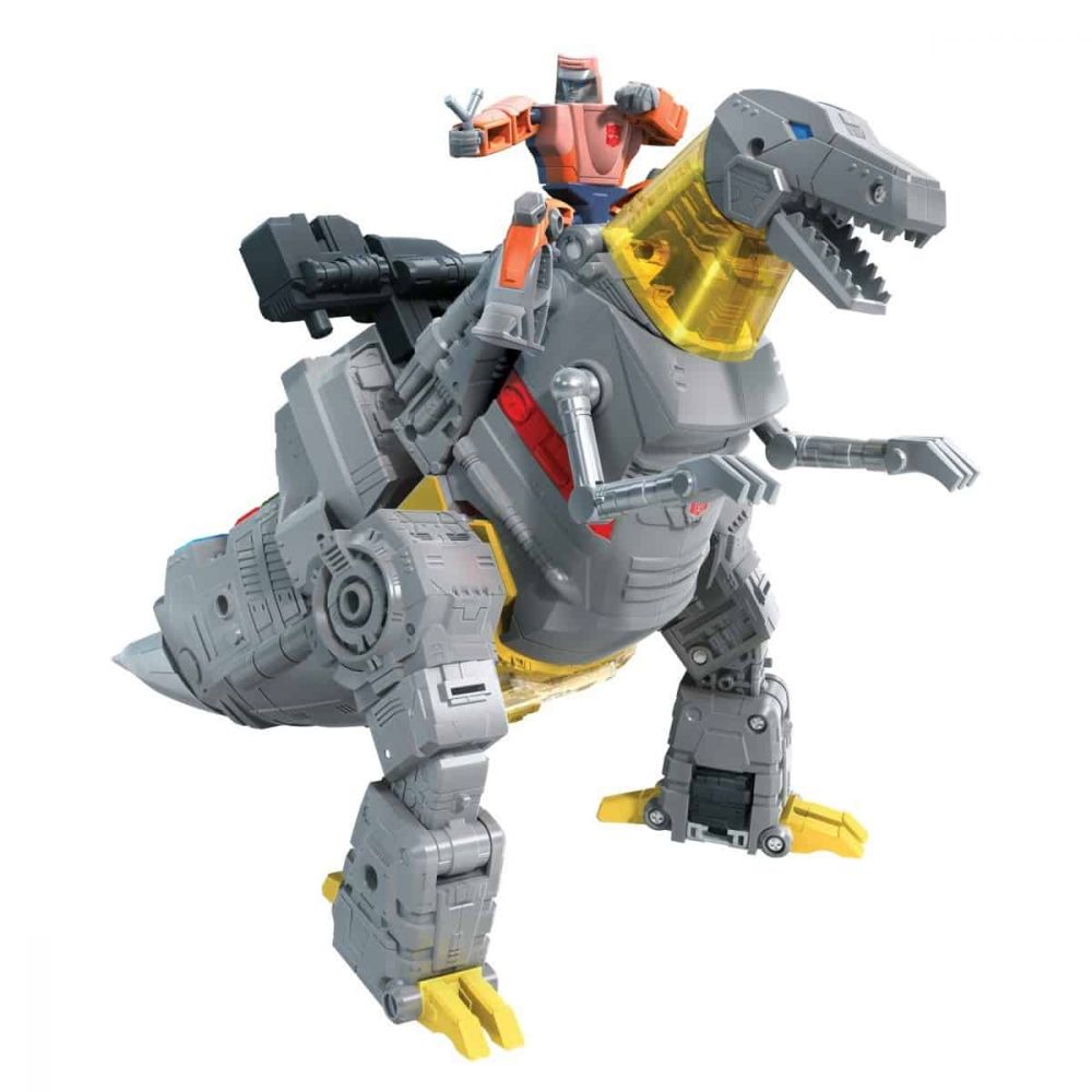 The Studio Series has always allowed fans to reach past the big screen and create the ultimate Transformers collection inspired by iconic movie moments from the Transformers movie universe. Now, the Studio Series line is expanding to include the epic moments and characters from the classic The Transformers: The Movie, bringing fans a whole new series of screen-inspired figures to collect!This Studio Series 86-06 Leader Class The Transformers: The Movie-inspired Grimlock figure converts from robot to t-rex mode in 24 steps. Includes non-converting Autobot Wheelie figure that can sit on Grimlock figure in both modes. Remove backdrop to showcase Grimlock and Autobot Wheelie in the Mockery of Justice scene. In the Mockery of Justice scene Grimlock, Wheelie, and the Dinobots storm the Quintesson Courtroom to save Hot Rod and Kup from Quintesson judgement. Pose the figures out with the included blaster accessory and imagine recreating this classic movie moment!
